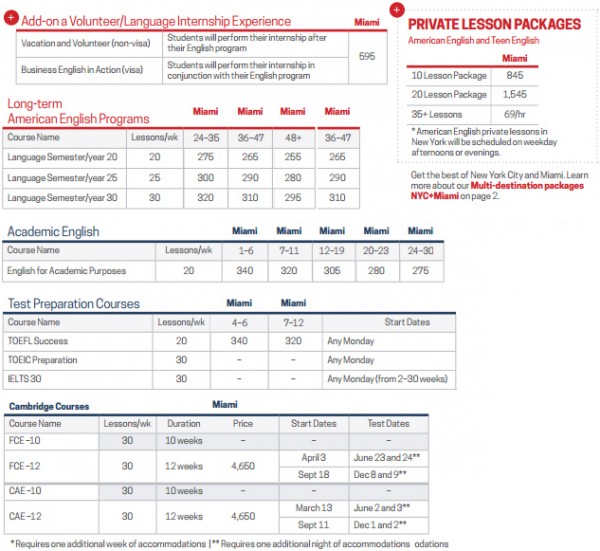 프로그램 | American English Program Vacation 'n Learn 주당 16레슨 이 프로그램을 통해 학교 위치를 깊이 경험하면서 영어 실력을 향상시킬 수 있습니다. 일주일에 네 번 오전, 오후 또는 오후에 네 번의 수업을 받게됩니다. Rennert의 다양한 활동 일정을 활용하여 매일 3일간의 주말뿐만 아니라 나머지 시간을 즐길 수 있습니다. 강사로부터 더 많은 관심을 받으며 충분한 말하기 말하기, 그룹 활동, 쌍 작업 및 발표에 중점을 둡니다. 교사가 진행하는 견학 및 문화 활동으로 수업이 향상됩니다. 수업: 주당 16레슨/주4일/ 1일 4레슨(금요일선택가능) 한반인원: 최대 12명 레벨: 초급-고급 수업시간: 오전 9시-오후 12시 40분 또는 오후2시-오후 5시 40분 개강일: 매주 월요일 Rapid Progress 주당 20레슨 이 세미 인텐시브 프로그램을 통해 뉴욕에서 과외활동을하면서 충분한 시간을 들여 영어 공부를 빠르게 진행할 수 있습니다. 수업은 하루 4시간, 오전 또는 오후에 진행됩니다. 뉴욕의 Rennert 학생들과 함께 제공하는 모든 것을 즐기기 위해 자유시간을 이용하십시오. 영어 실력을 향상시키고 의사 소통을 향상시키고 자합니다. 이 프로그램은 새로운 언어 실력을 사용할 수있는 기회가 많아서 영어권 국가에서 듣기, 말하기, 읽기 및 쓰기를 배우고 실습하는 데 도움이됩니다. 수업: 주당 20레슨/ 주4일/ 1일 4레슨 한반인원: 최대 12명 레벨: 초급-고급 수업시간: 오전 9시-오후 12시 40분 또는 선택과목은 오후2시-오후 4시 5분 개강일: 매주 월요일 Rapid Progress 주당 30레슨 우리의 가장 집중적 인 프로그램은 오전 수업과 오후 수업 (금요일 수업은 없습니다)이 포함 된 하루 6교시 수업을 제공합니다. 특히 대화 기술에 중점을 둡니다. Rennert는 교실 학습을 보완하기위한 광범위한 활동 일정을 제공합니다. 수업 시간에 영어를 배우고 저녁 시간과 주말에 뉴욕을 즐겨 보세요! 영어 실력을 향상시키고 의사 소통을 향상시키고 자합니다. 이 프로그램은 영어를 사용하는 나라에서 듣기, 말하기, 읽기 및 쓰기를 배우고 실습하는 데 도움이되며 새로운 언어 기술을 사용할 수있는 기회가 충분히 주어집니다. 수업 프로그램에는 대화, 발음, 작문 및 TOEFL 준비와 같은 다양한 관심사가있는 추가 수업 선택 수업이 포함되어 있습니다. 수업: 주당 30레슨/주5일 한반인원: 최대 12명 레벨: 초급-고급 수업시간: 오전 9시-오후 12시 40분, 오후2시-오후 5시 40분 개강일: 매주 월요일 Business English 변화하는 비즈니스 세계에서 의사 소통하는 데 필요한 언어 능력을 개발함으로써 성공적인 경력을 쌓을 수 있습니다. 이 과정은 대학생 및 비즈니스 경력을 추구하려는 최근 졸업생에게 이상적입니다. 이전 직장 경험은 기대하지 않습니다. Rennert의 비즈니스영어 수업은 지도력, 마케팅, 외국인 투자, 자금 및 금융, 새로운 시장 및 팀 구성과 같은 주제와 관련된 언어에 초점을 맞추고 소개하는 주 단위 모듈을 보유하고 있습니다. 비즈니스 영어 어휘를 늘리고 모의 비즈니스 시나리오, 토론, 서면 연습 및 프레젠테이션에 사용하십시오. 수업: 주당 20레슨, 주당 5레슨, 하루 4레슨 한반인원: 최대 12명 레벨: 중상급-고급 수업기간:1 - 16주 수업시간: 오전 9시-오후 12시 40분 또는 오후2시-오후 5시 40분 과정 완료시 수료증 개강일: 매주 월요일