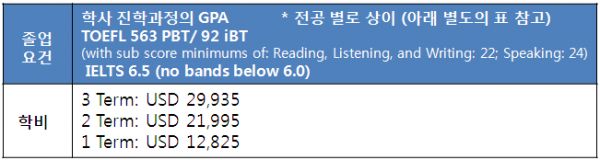 학비 | 3 Term :$29,935 2 Term :$21,995 1 Term :$12,825