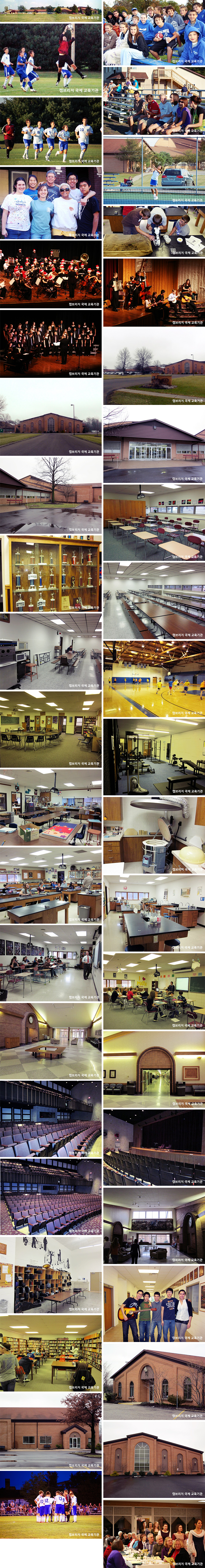 학교소개 | Central Christian School은 Kidron에 위치하고 있습니다. 이곳은 여러 주요도시와 오하이오 관광지 등에 이동이 편리한 곳에 위치해있습니다. 학업 프로그램으로는 3개의 AP 과목, 3개의 Dual Enrollment 과목을 제공합니다. Dual Enrollment의 경우 근처 Bluffton University와 함께 대학과정을 제공합니다. 이 수업은 23시간이 가능하며 크레딧 한 시간당 $75 입니다. 수업은 캠퍼스에서 진행됩니다. Technology Students Association으로 60개 이상의 STEM (과학, 기술, 공학, 수학)을 기준으로 하는 대회에 참여할 수 있고, 관련된 리더십 활동과 더 높은 공학 수업을 준비할 수 있도록 돕습니다. 그리고 학생들은 겨울 방학이 끝난 후 해양생물 (Florida Keys), 사진, 정부 활동 및 목공 등 특별 수업을 들을 수 있습니다. 특별 활동으로는 6개의 클럽, 특별활동, 7개의 스포츠 활동에 참여할 수 있습니다. Central Christian School의 학생의 90% 이상은 음악 프로그램에 참여합니다. 이는 두 고등학교 합창단, 대표팀 가수, 오케스트라, 재즈 밴드, Heartland Strings 및 여러 그룹이 있습니다. 대부분의 악기와 성악 개인 레슨은 캠퍼스 내에서 진행됩니다. 모든 초등학교, 중학교 그리고 9학년 학생들은 합창단에 참여해야 합니다. 음악 학과는 오하이오 주에서 우수한 것으로 알려져있고, 미국, 캐나다, 푸에르토리카에 있는 15개의 학교가 함께하는 뮤직 페스티벌에 매년 참가하고 있습니다. SAT 평균점수는 1716점, 상위 30%는 2160점 입니다. 졸업생이 진학한 대학은 다음과 같습니다. University of Virginia, Boston University, Berkeley College of music, Texas Christian University, The Ohio State University-Agricultural Technical Institute, The Ohio State University-Mansfield, University of Cincinnati, Kent State University. |