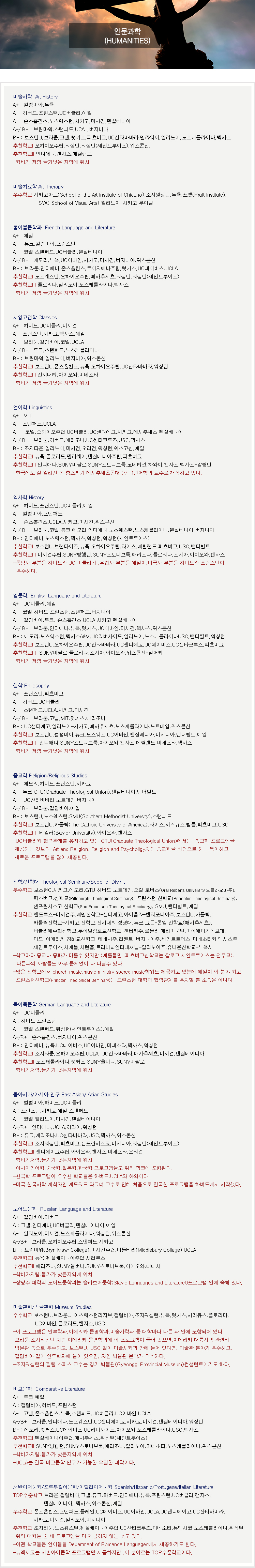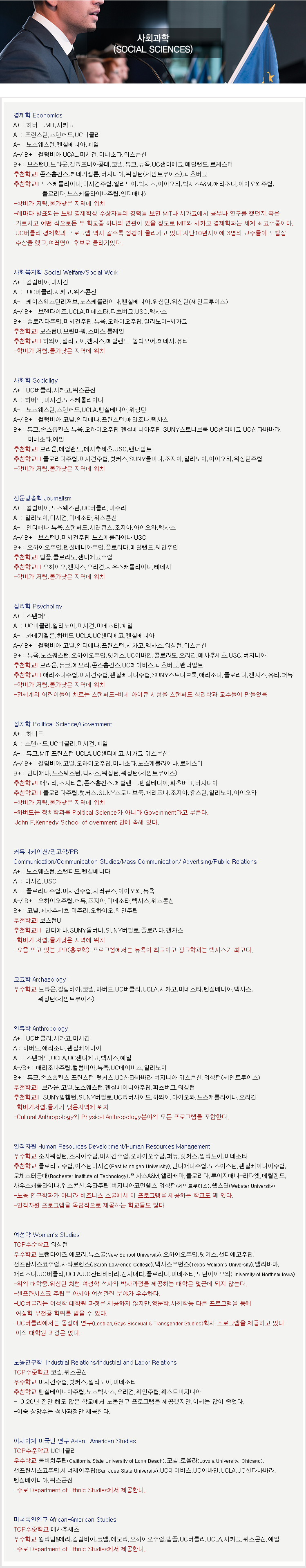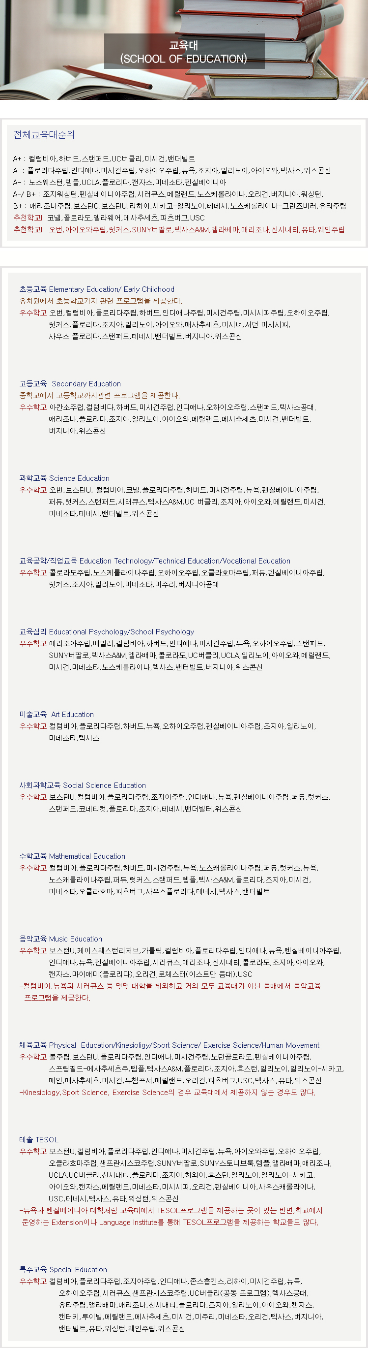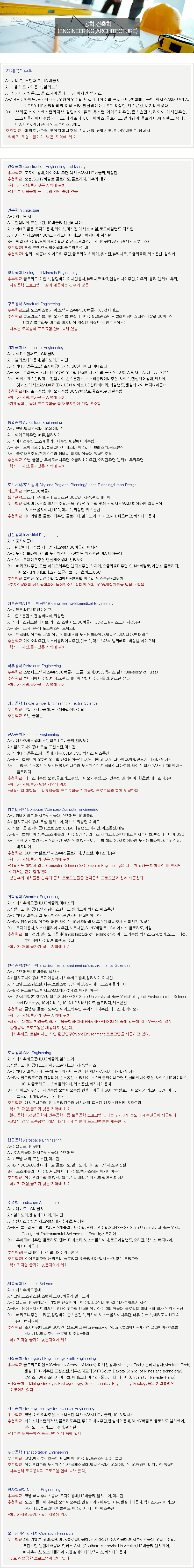 전공별 대학랭킹&추천학교