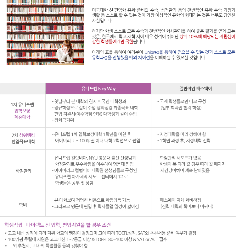 유니프렙진학 명문대학